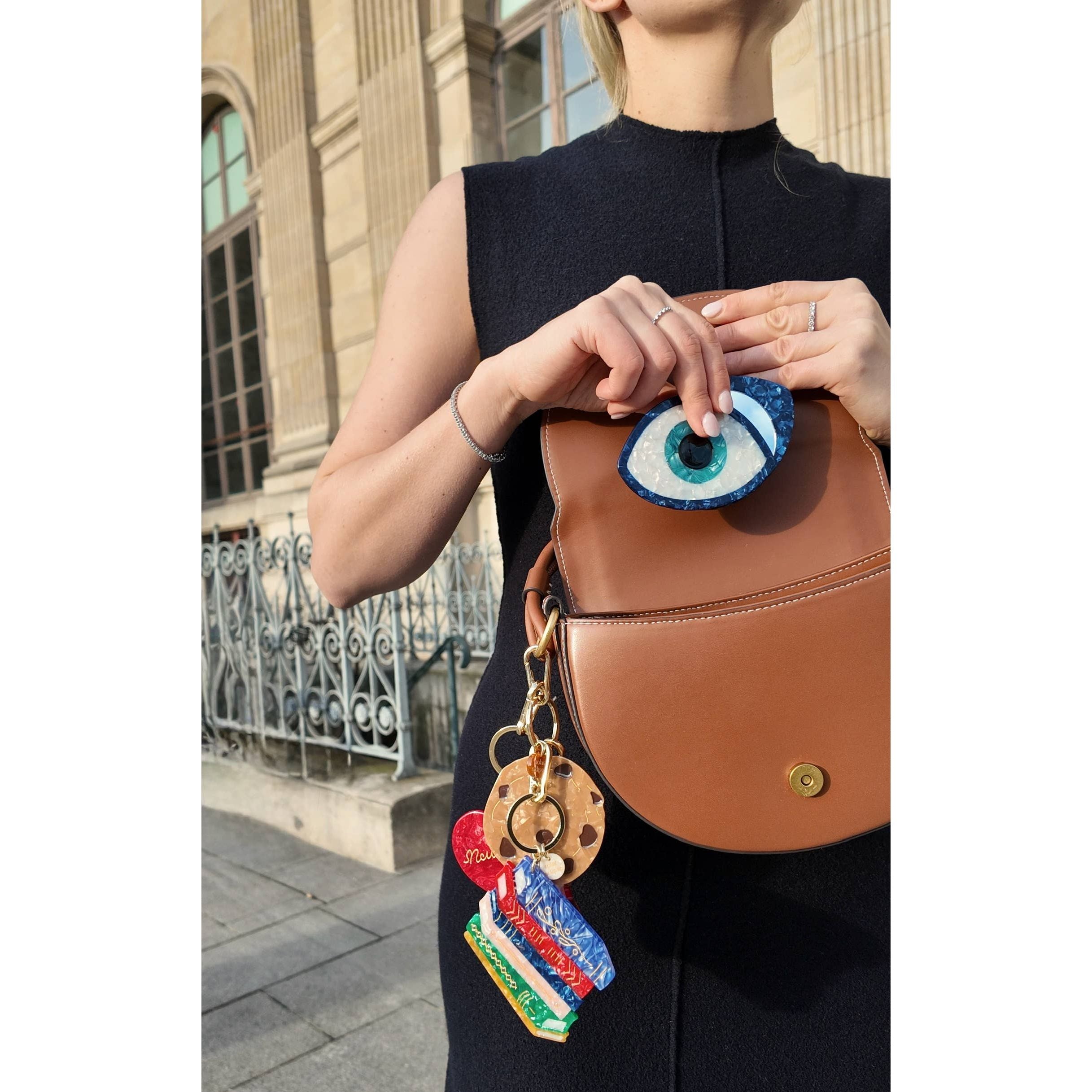 Expertly hand-painted on both sides with meticulous attention, this delightful keepsake transforms a stack of stories into a timeless treasure. Crafted from biodegradable acetate, it reflects a perfect blend of artistic creativity and sustainable design, all thanks to the talented all-female team at Solar Eclipse in NYC, who produce it in small batches. This bag charm is not just a gift; it's a heartfelt token for writers, readers, and anyone who truly appreciates the magic of storytelling!