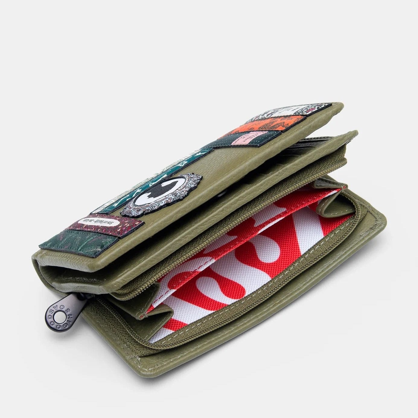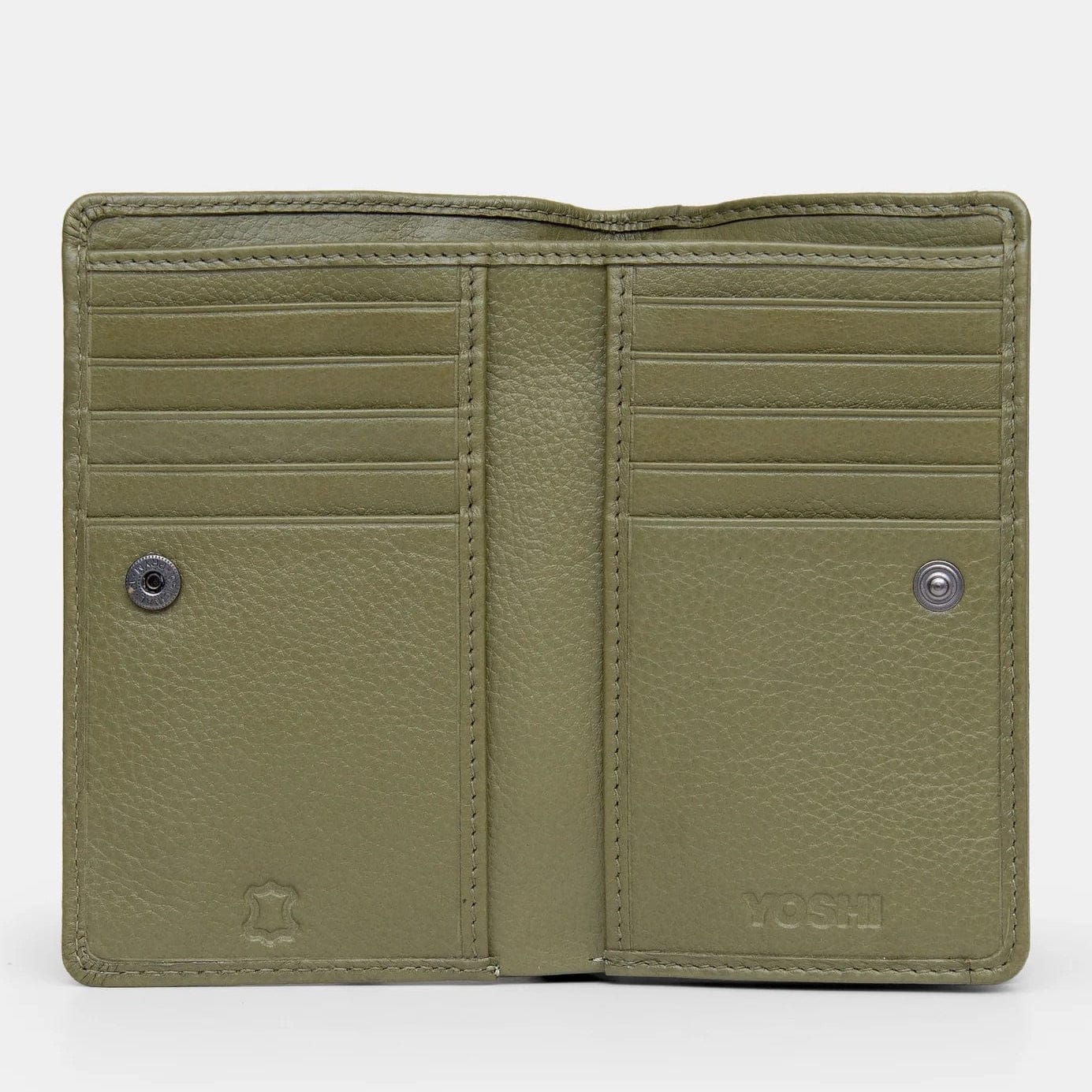 Meet your new favourite accessory—a purse that proves style and smarts go hand in hand. Crafted from buttery olive leather, it features whimsical book appliques that celebrate your literary obsession. Beyond the good looks, this flap-over design packs serious organisational punch: 10 card slots, a dedicated notes pocket, and a generous zip compartment for coins keep your essentials in check. RFID protection shields your sensitive information, while the press-stud closure ensures nothing goes wandering. Includes a protective Yoshi dustbag. Compact at 14 x 8.5 x 3 cm, it's the perfect size for everyday carry.